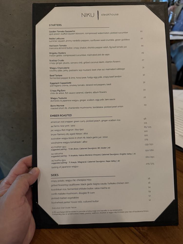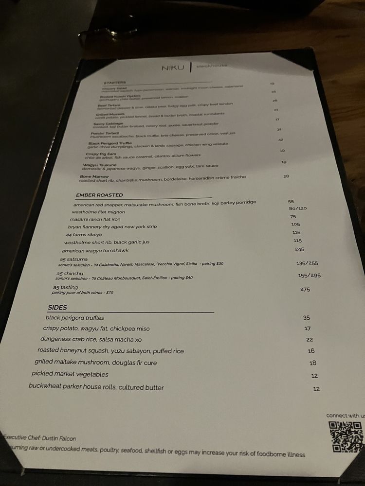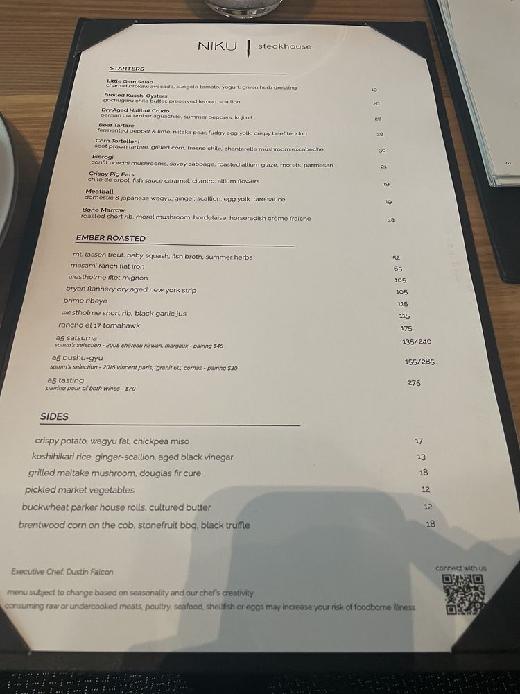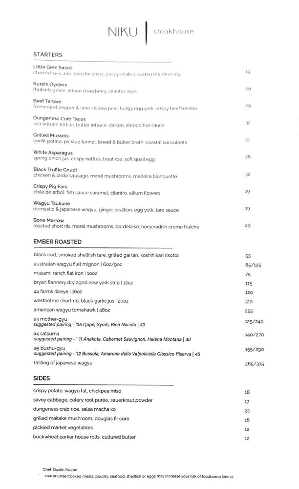Introducing Niku Steakhouse, a trendy and upscale restaurant in San Francisco known for its intimate and romantic ambiance. This classy steakhouse offers a variety of options, including keto, pescatarian, and vegetarian dishes. The menu includes unique dishes like Scallop Crudo and Bone Marrow, which have left customers raving about the rich flavors and exceptional quality. The attentive service and top-notch dining experience make Niku Steakhouse a favorite among steak lovers. With options for private dining and happy hour specials, this restaurant is perfect for special occasions or a delicious dinner. Don't miss out on trying their famous Wagyu steak, earning them a reputation as the best Wagyu steak restaurant in the Bay Area. Visit Niku Steakhouse for a memorable dining experience that will leave you coming back for more.